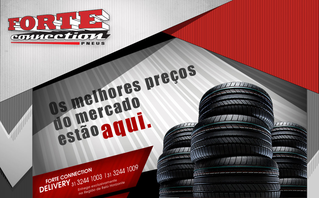 Com o objetivo de trazer ao consumidor o máximo em praticidade, a FORTE CONNECTION apresenta ao mercado mineiro soluções criativas que facilitam o seu cotidiano. Especializada na venda de todos os tipos de pneus de passeio (alto desempenho, passageiro, todo terreno, utilitário), suv’s, caminhões e tratores, ela inova ao proporcionar um atendimento completo. A marca traz ainda um exclusivo serviço de entrega, levando até o cliente o pneu escolhido com rapidez e comodidade.